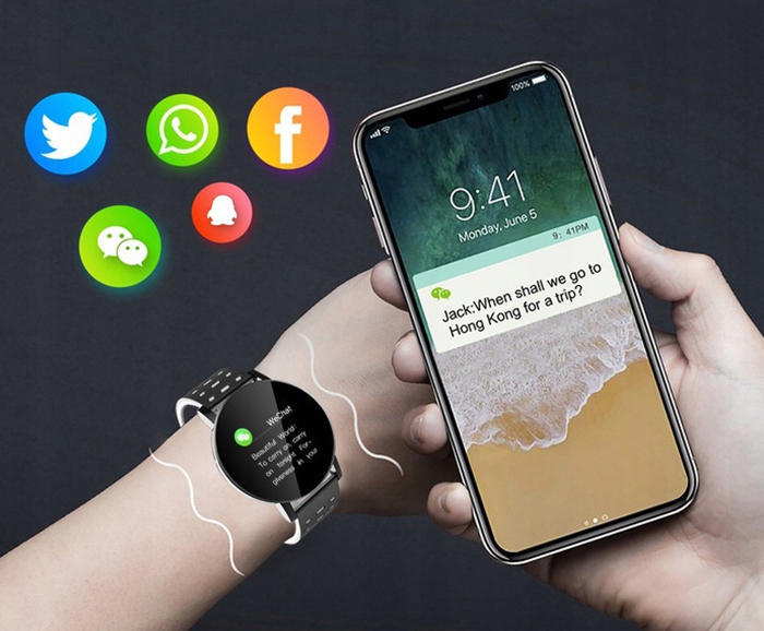 - нагадування про дзвінки/повідомлення - смарт-браслет підключатиметься до вашого мобільного телефону через Bluetooth, коли хтось дзвонить вам або надсилає повідомлення. Браслет буде вібрувати та показувати підказку на екрані.