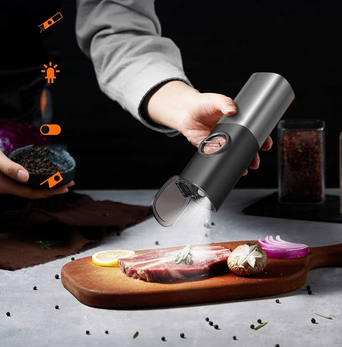 МЛИН ДЛЯ СІЛІ ТА ПЕРЦЮ ЕЛЕКТРИЧНИЙ, КОМПЛЕКТ ЗІ LED-ПІДСВІЧУВАННЯМ, РЕГУЛЬОВАНИЙ