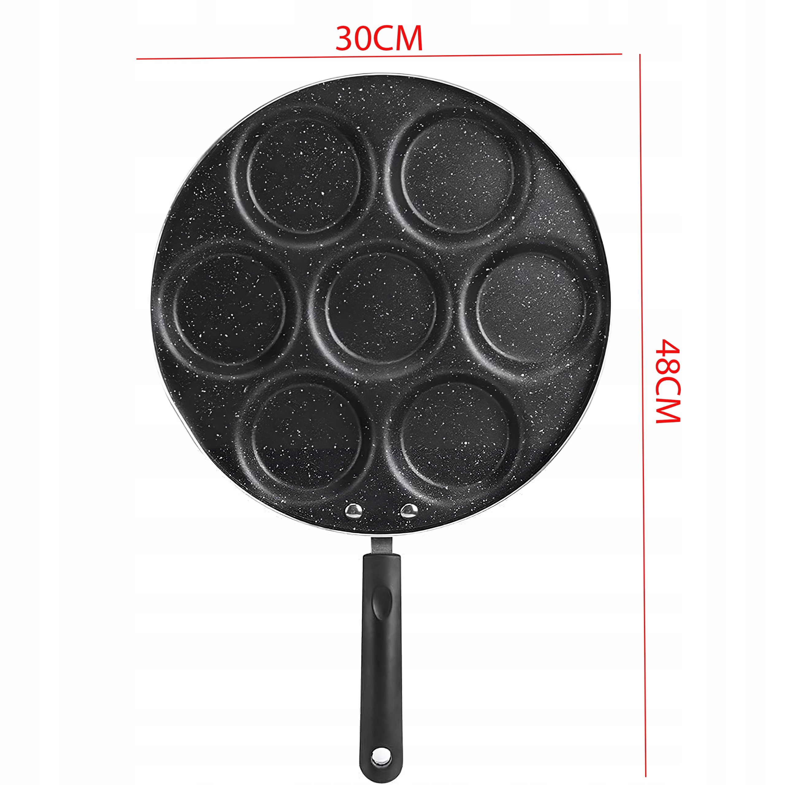 Надзвичайно універсальна сковорода обов'язково стане в нагоді на вашій кухні. Він ідеально підходить не тільки для смаження яєць, млинців чи млинців, а й для омлетів, дерунів, міні-піци та багатьох інших страв і доповнень, які ви хочете приготувати теплими. 7 окремих ніш дадуть більше можливостей урізноманітнити страви. Смажені страви матимуть ідеально круглу форму, що неодмінно покращить естетичність страви, а також додасть апетитний вигляд.