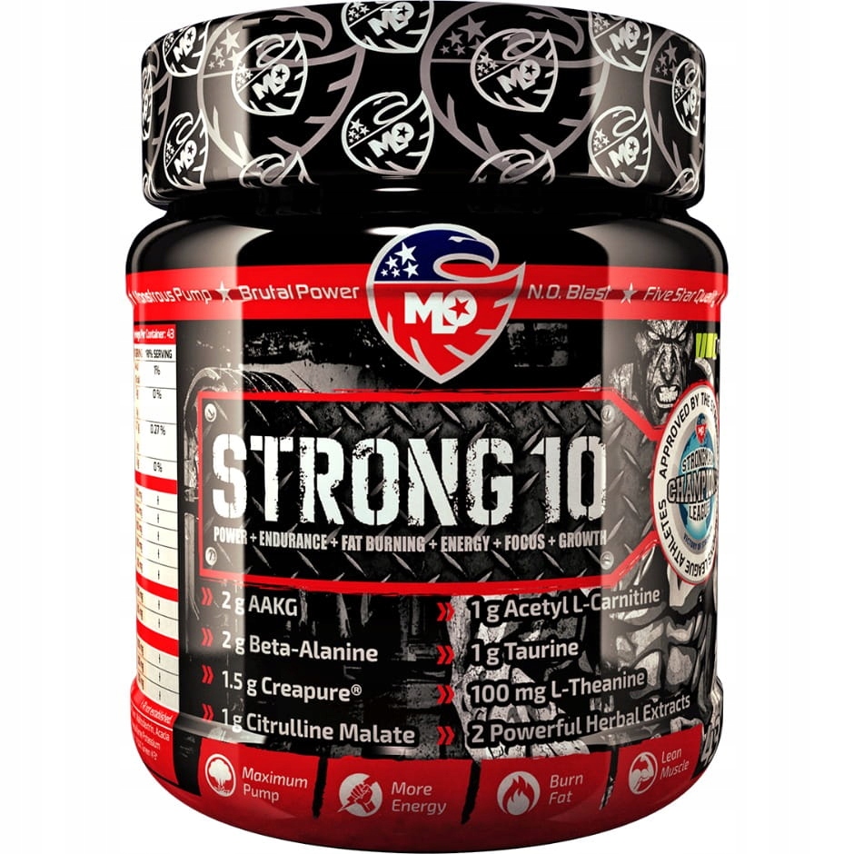 5. Швидша регенерація: Інгредієнти, що містяться в Strong10, підтримують регенерацію м’язів після тренування, що дозволяє скоротити перерви між тренуваннями та продовжити інтенсивне тренування.