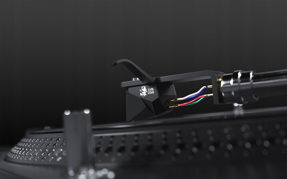 2M Black LVB 250 використовує Diamond Nude Shibataна опорі з бору. Це комбінація, відома з відомого картриджа MC Cadenza Black.