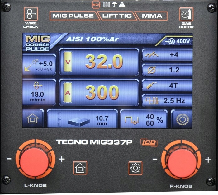 Clear and easy to use 7-inch LCD display enables accurate adjustment of welding parameters such as: