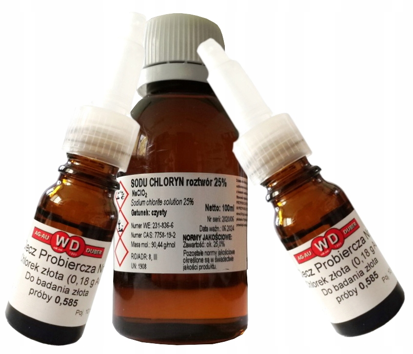 хлорид золота - це тестова рідина, призначена для визначення золота на 0,500 - 0,600. Упаковка містить 0,18 г чистого золота. Польський комітет щодо нормалізації заходів та якості, що діють у всіх тестувальних офісах.