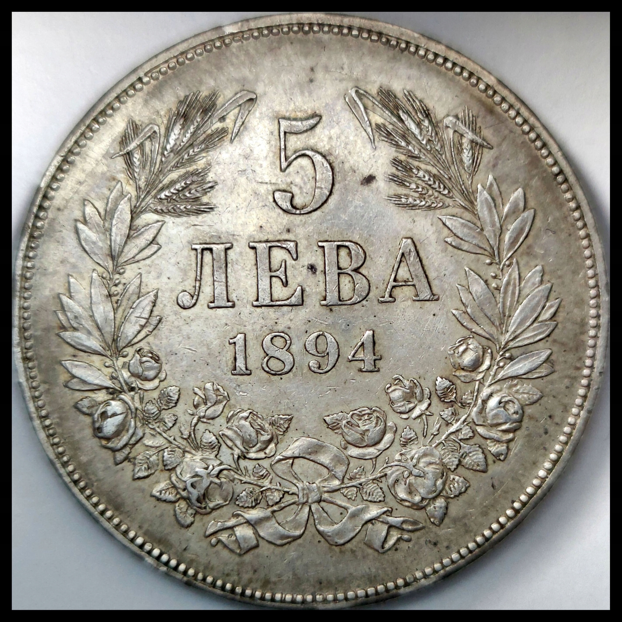 MNB - БОЛГАРІЯ 5 левів 1894 # СРІБЛО # ст 2+