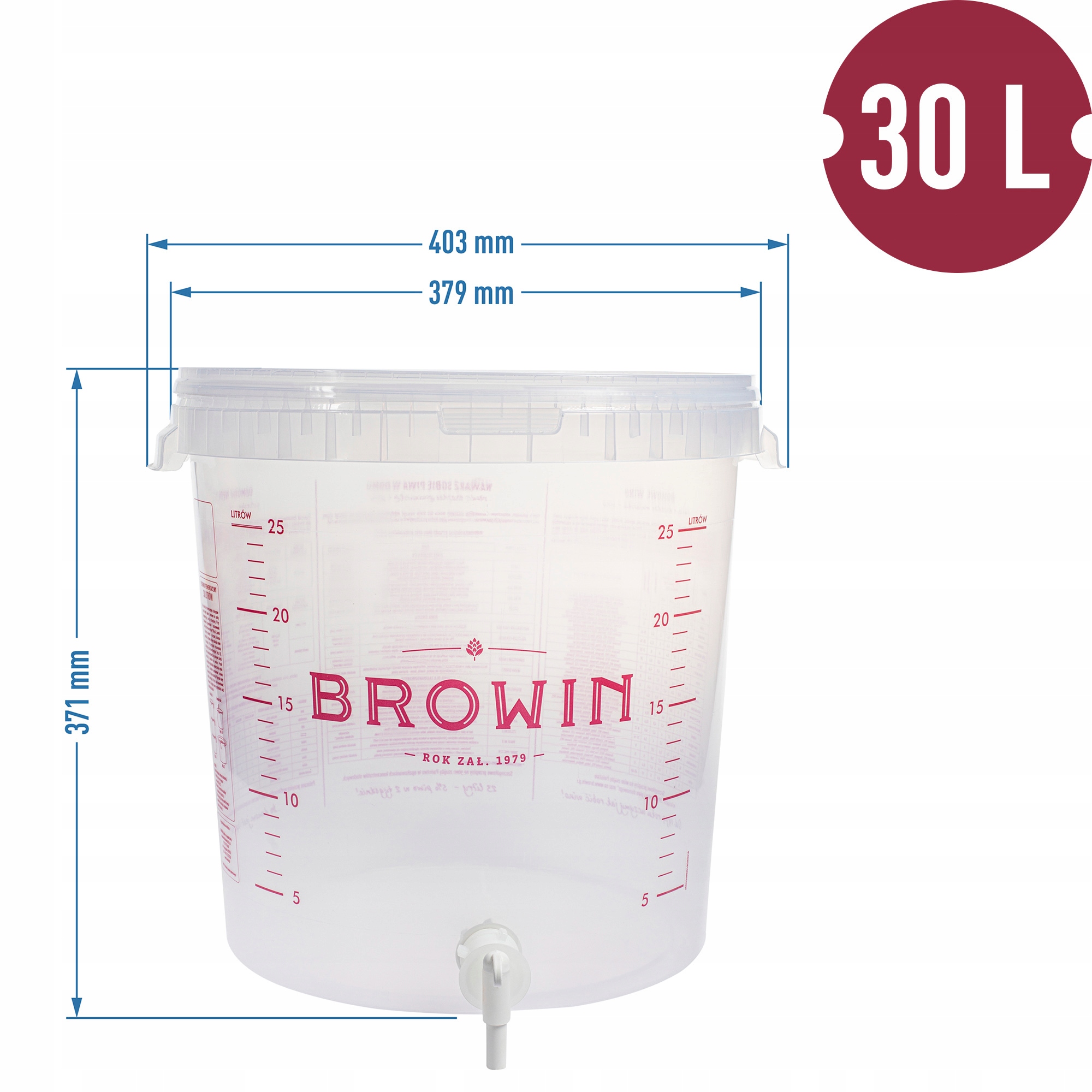 - Бродільна ємність 30 л зі шкалою та написами польською мовою