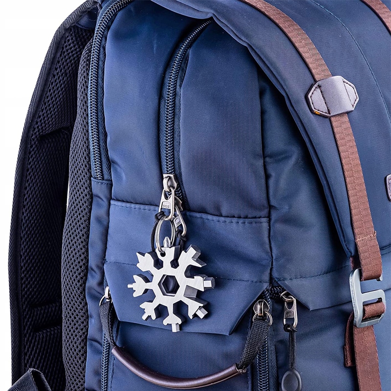 Інструмент невеликого розміру 6 х 6 см. Кільце, що входить в комплект, дозволить вам повісити сніжинку куди завгодно. Крім того, ключ можна використовувати як брелок. Його невеликий розмір означає, що ви можете взяти його з собою буквально в будь-яку велосипедну поїздку, похід або біля багаття.
