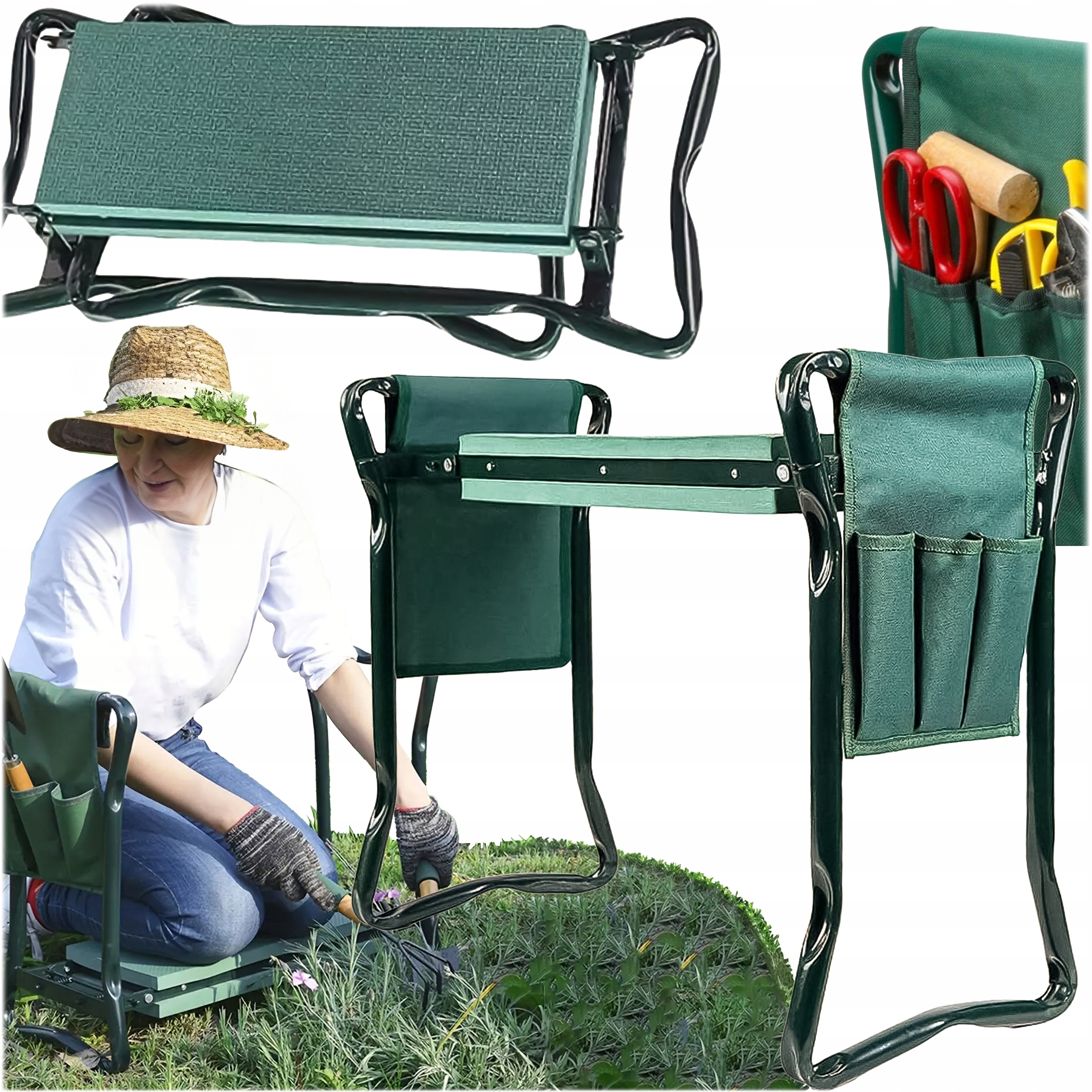 МНОГОФУНКЦІОНАЛЬНЕ СИДІННЯ САДОВЕ, ТАБУРЕТ з КОЛІНАМИ, 3 в 1, ЗЕЛЕНИЙ