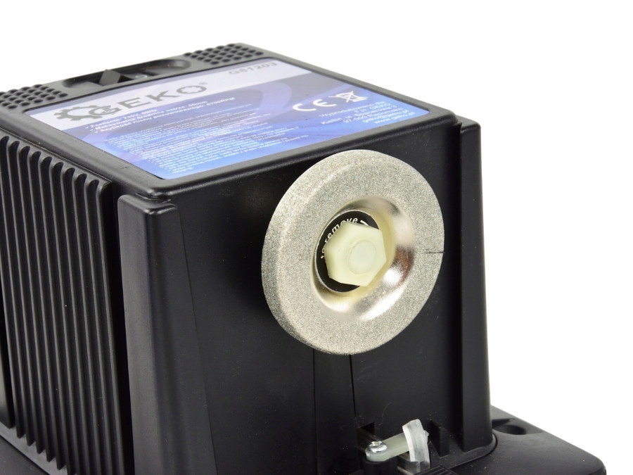 Точилка має електродвигун потужністю 65 Вт, який у поєднанні з високою потужністю якісний точильний камінь діаметром 48 мм дозволяє точно заточувати інструменти практично з будь-якої сталі.