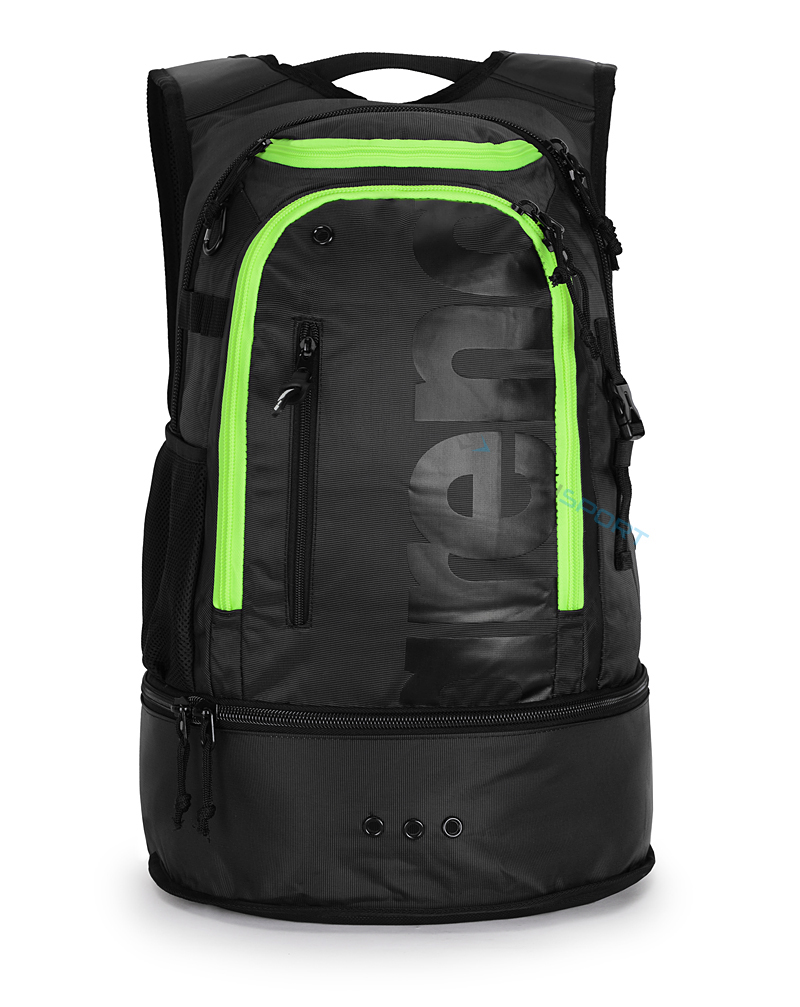Фірмовий рюкзак ARENA FASTPACK 3 - остання модель рюкзака Arena, яка прийшла на зміну дуже популярної зараз моделі Fastpack 2.2. У новій моделі, крім іншого, змінили замки, які стали ще кращими та міцнішими. Дуже місткий рюкзак на два відділення з численними інноваційними рішеннями. Він добре підійде як рюкзак для велосипеда, басейну, школи або звичайного туриста. Має велике основне відділення, спеціальне відділення для взуття (з вентиляцією) і переднє відділення з системою полиць, що полегшує організацію та розміщення багажу в рюкзаку. Рюкзак міцно виготовлений і добре оброблений з увагою до кожної деталі. Він виготовлений зі спеціальних матеріалів, просочених зсередини ПВХ-покриттям, що підвищує стійкість до погодних умов. Крім того, дно рюкзака виконано з повністю водонепроникного матеріалу з підвищеною стійкістю до механічних пошкоджень, стирання і розривів. Рюкзак також має численні функціональні системи лямок. Універсальний рюкзак для любителів спорту, визнаний серед плавців і триатлоністів Улюблений плавцями практичний і універсальний рюкзак Arena Fastpack 3.0 призначений для любителів спорту, особливо плавання та триатлону. Великий задній відсік забезпечує достатньо місця для зберігання навіть великих навчальних інструментів. З великим нижнім відділенням для мокрого одягу та взуття. Рюкзак можна повісити на карабін і використовувати як шафку. М'яка задня панель і плечові ремені забезпечують відмінний комфорт навіть при повному завантаженні рюкзака. У комплект входить додаткова сумка для зберігання вологого спорядження або взуття.
