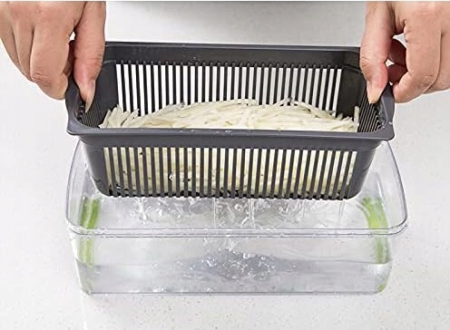 Наша терка для овочів постачається зі знімним контейнером, у який можна збирати свіжі смажені овочі. Тому у вас є можливість зберегти його на потім. Овочерізку можна легко повністю розібрати.