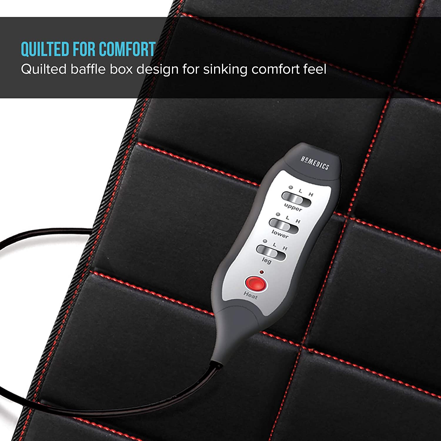 СЬОГАНИЙ ДЛЯ КОМФОРТУ: Вібраційний масажний килимок HoMedics для всього тіла з підігрівом має стьобану коробку з перегородкою, яка забезпечує відчуття комфорту, щоб ви могли по-справжньому зануритися в масаж.