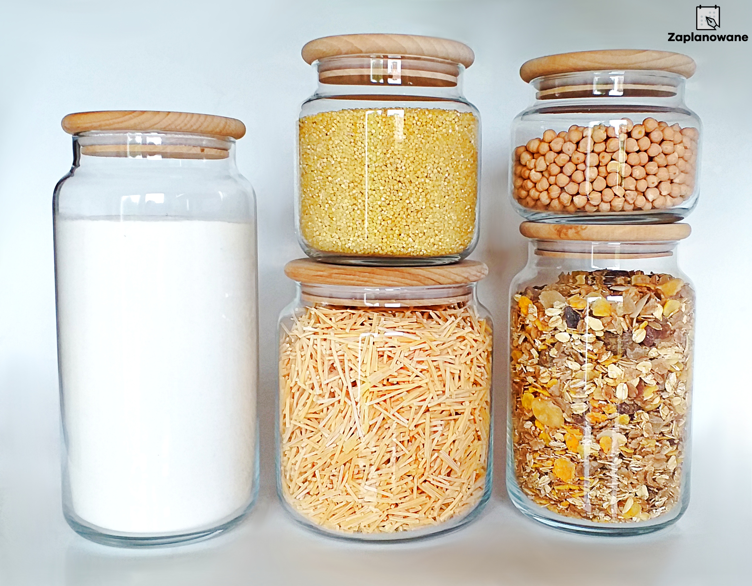 Скло виглядає елегантно, що робить його придатним не тільки для зберігання, але й для демонстрації контейнерів на відкритих полицях на кухні. Це не тільки дозволить швидко знайти потрібний товар, але й додасть приміщенню естетичної цінності.