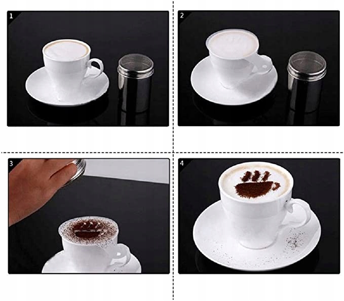 - Функція: для рівномірного посипання кави какао-порошком або корицею для покращення смаку, а також для збовтування солі, перцю та цукрової пудри або для прикраси тортів і кексів .