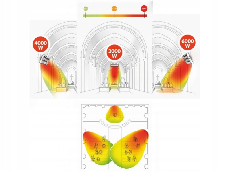Роботу цього променистого обігрівача ніяким чином не порушують великі потоки повітря, тому пристрій можна встановлювати в місцях з відкритими вікнами та протягами. Його високі параметри нагріву дозволяють монтувати його далеко від нагрівальної поверхні на стіні або стелі, що дозволяє використовувати Хатор у великих приміщеннях. Таким чином, цей променистий обігрівач найбільше підійде для великих промислових приміщень із високими стелями, зокрема для опалення виробничих ліній або сушіння пофарбованих автомобілів.
