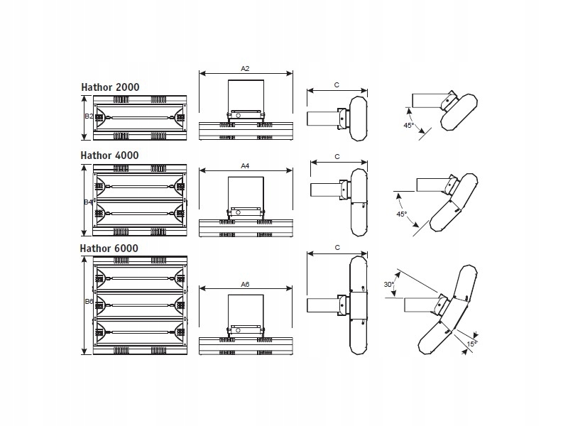 Хатор - серія ламп з найвищим ступенем нагріву. Доступний у 3 версіях: 2000 Вт, 4000 Вт, 6000 Вт у трьох різних типах нагрівання, що збільшують або орієнтуються на опалювальний простір. Вони не бояться повітряних потоків, дощу або піску, тому ідеально підходять для установки в густонаселених місцях.