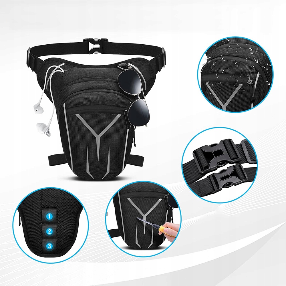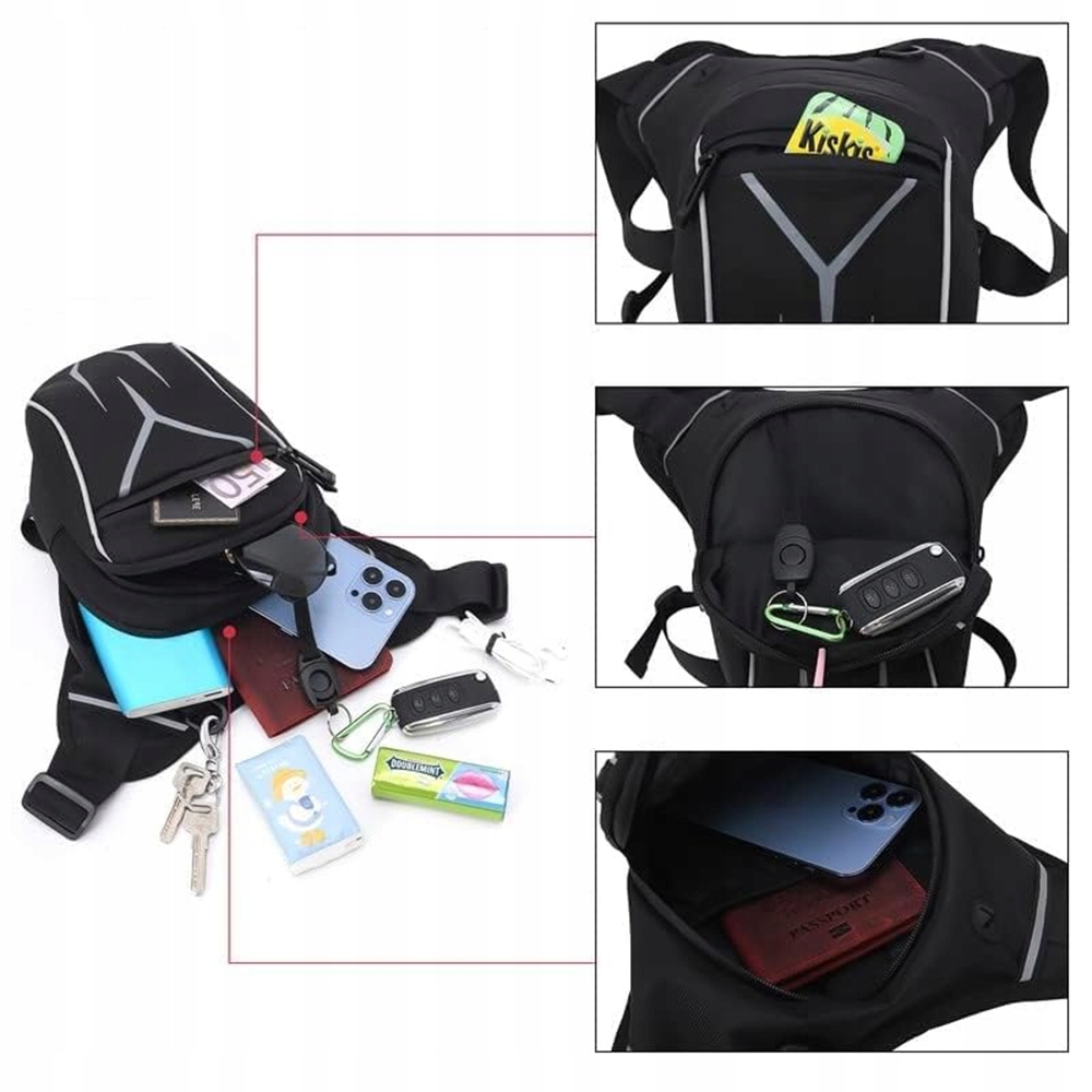 тактичний мішок для стегна з двома регульованими плечовими ремінцями. Ремінь для ніг можна відрегулювати на трьох позиціях для задоволення потреб різних людей. Ви можете носити його навколо талії, за стегнами, на грудях або на плечах.
