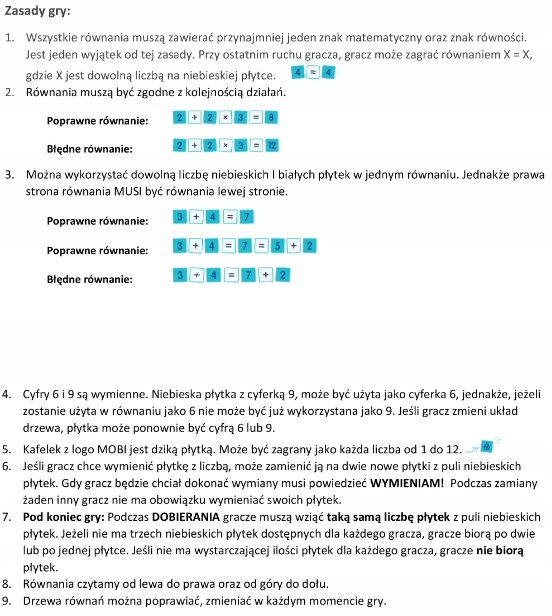 MOBI GRA PLANSZOWA Matematyczna od 1 do 6 GRACZY