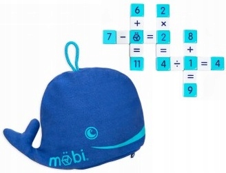 Mobi, упакований у тканинний мішечок із застібкою у формі кита, — це швидка, захоплююча та портативна гра на рахунок, множення, додавання, віднімання та ділення. що він сподобається всій родині.
