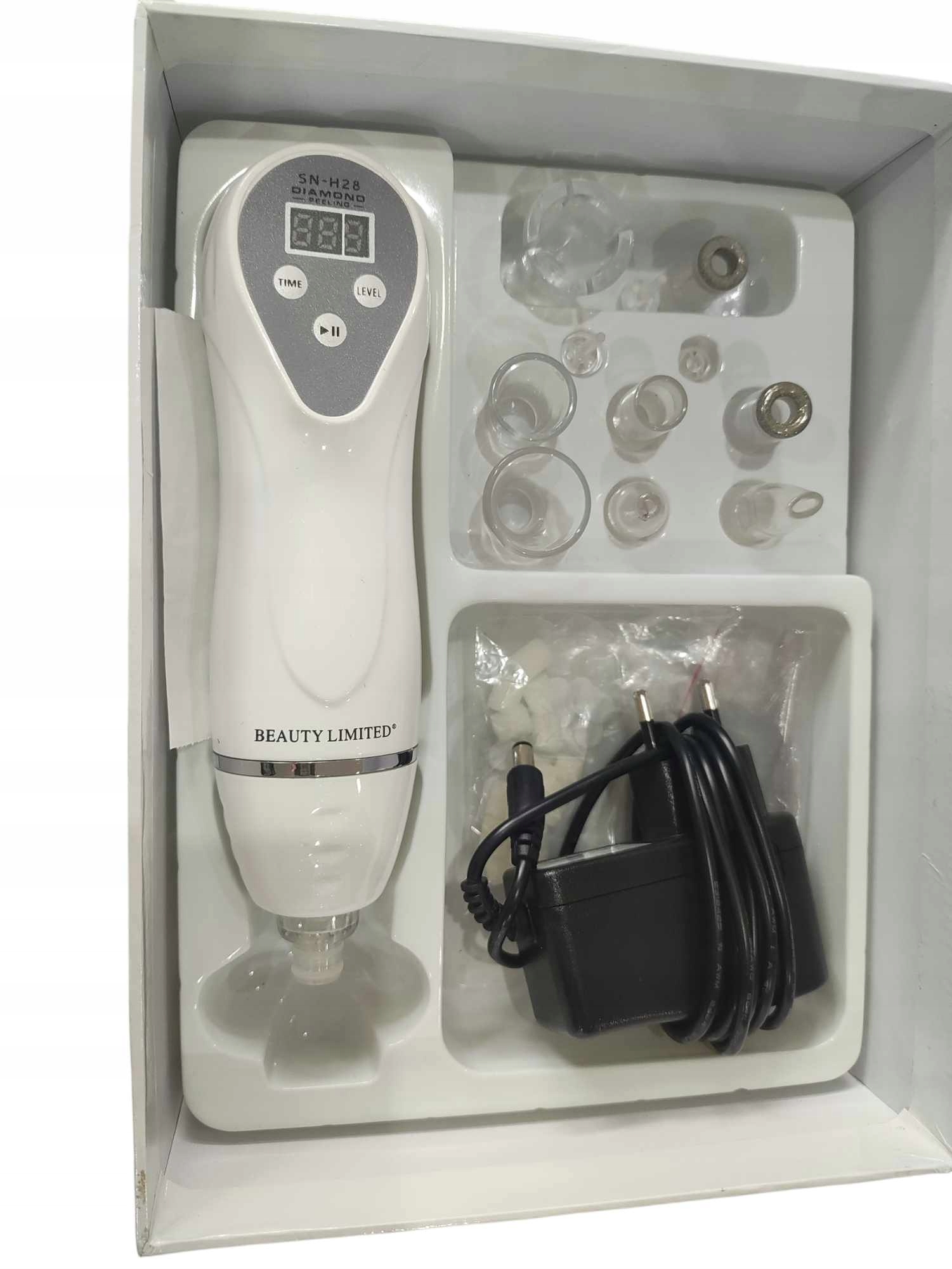 Мобільна алмазна мікродермабразія Beauty Limited® – це пристрій для виконання домашньої алмазної мікродермабразії, тобто механічного відлущування шкіри епідермісу шар за шаром за допомогою наконечників (головок), покритих кристалами алмазу. Крім того, пристрій має наконечники, призначені для вакуумний масаж, завдяки якому шкіра стає більш пружною та пружною. Перевага пристрою полягає в тому, що він мобільний, тому його можна легко упакувати та взяти з собою, наприклад, у подорож.