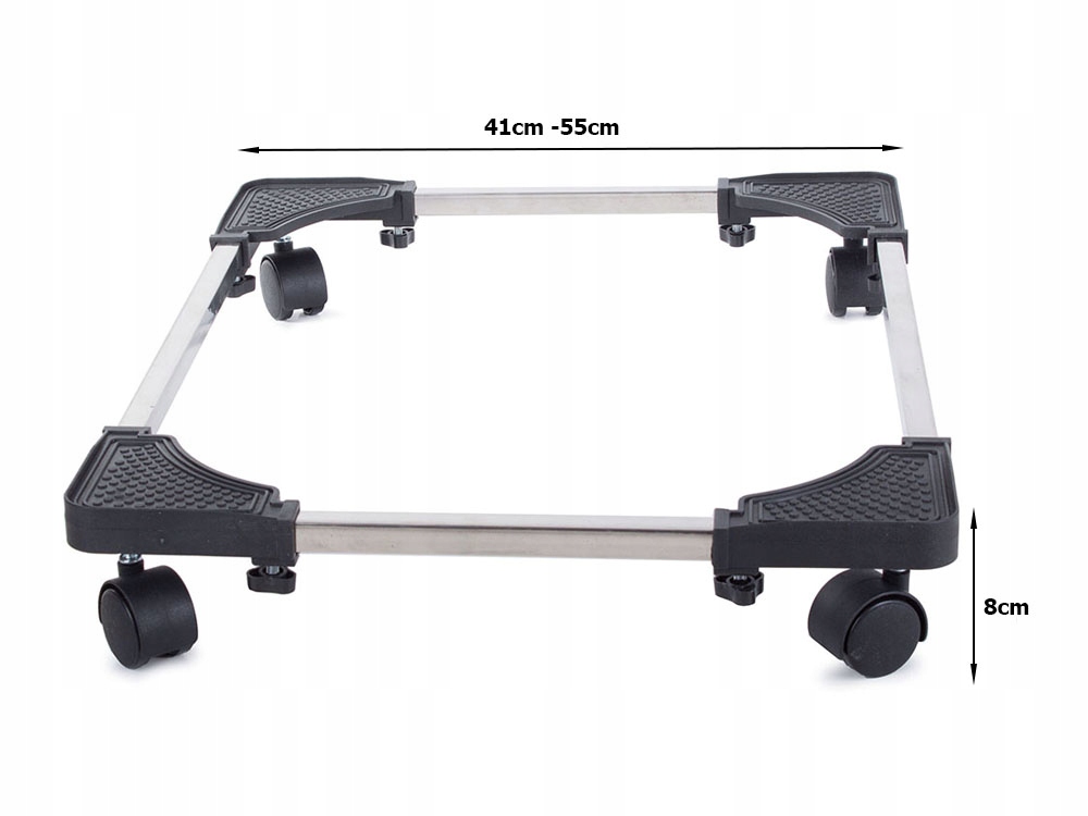 Універсальна підставка на колесах дозволяє легко транспортувати легку пральну машину, шафу, ящики та іншу побутову техніку. Основу можна легко адаптувати до розміру пристрою завдяки регулюванню ширини та довжини від 41 до 55 см.