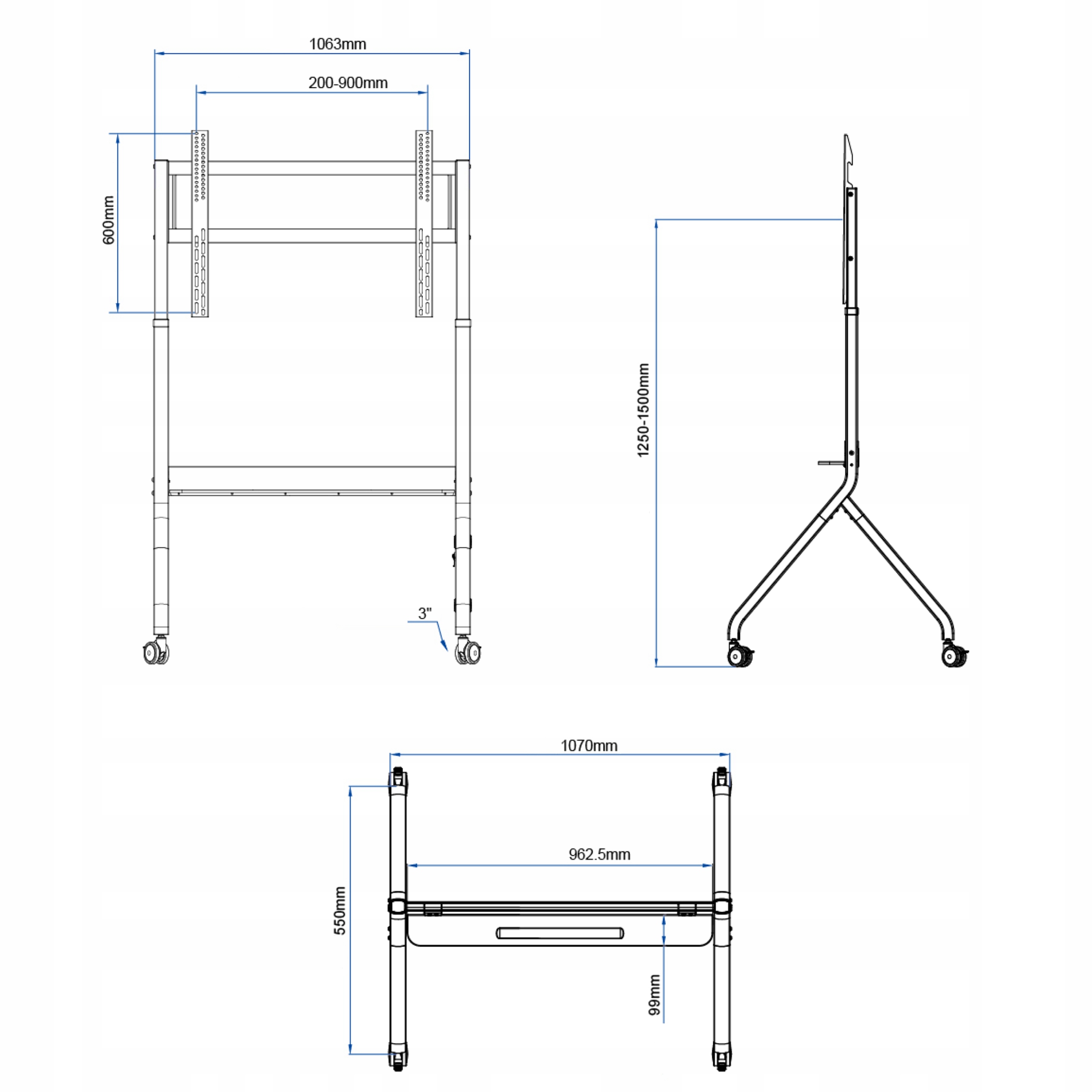 - Висота в діапазоні: 1250 ~ 1500 мм