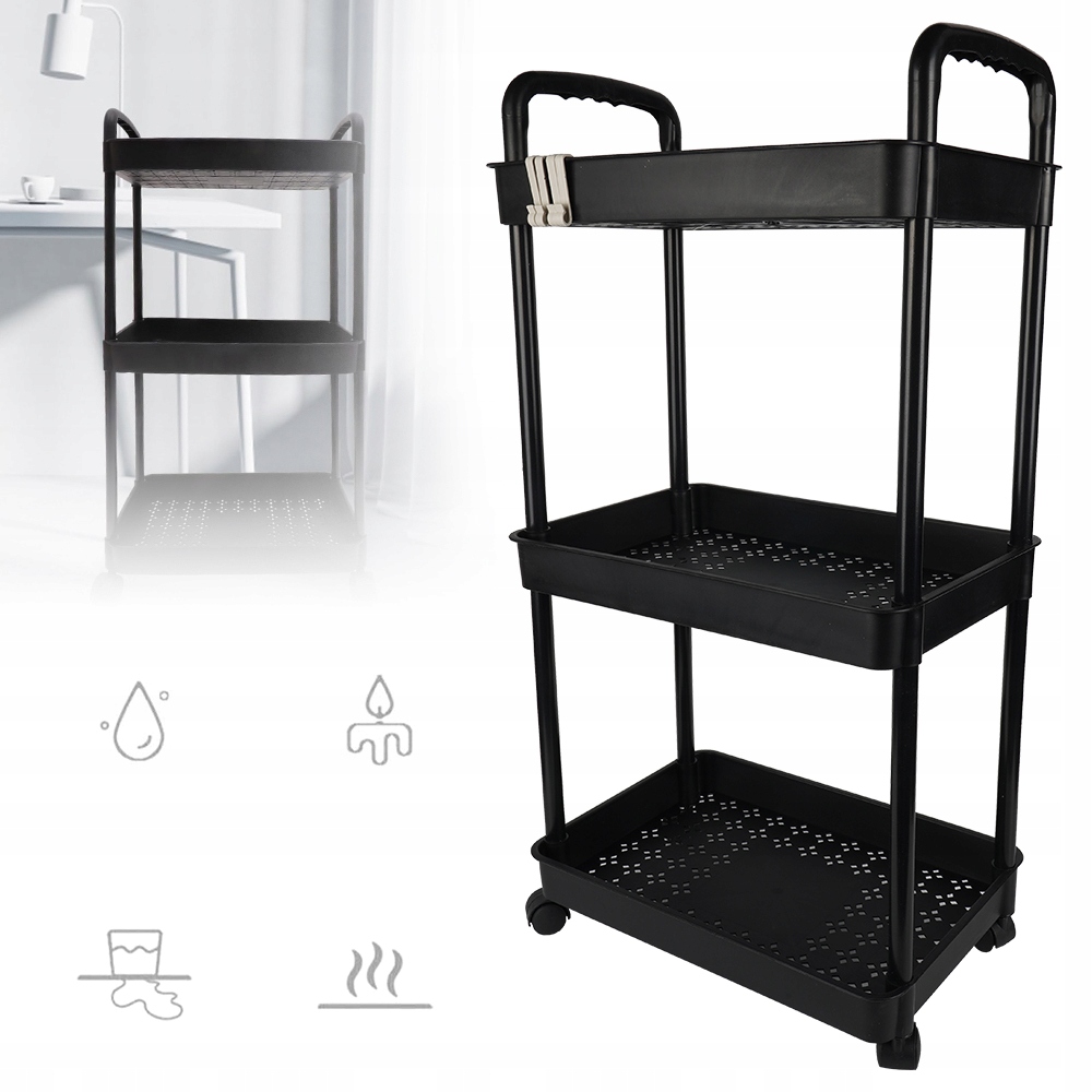 МОБІЛЬНА КУХОННА ПОЛИЦЯ СТІЛ ДЛЯ ВАННОЇ НА КОЛЕСАХ МЕТАЛЕВИЙ ВІЗОК ЧОРНИЙ