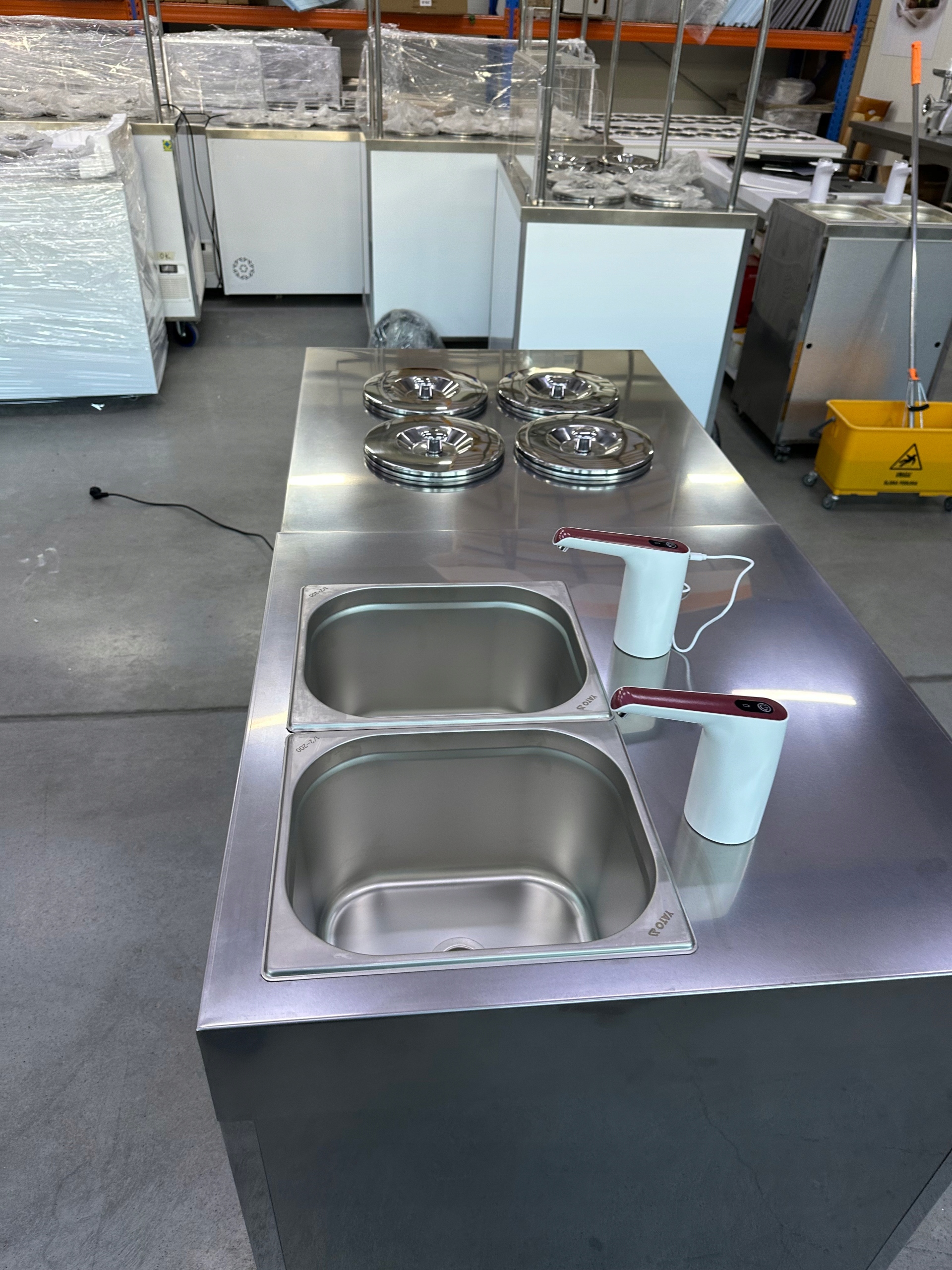 Мобільна мийка -це ідеальне рішення для гастрономії, вантажних автомобілів, харчування, семінарів або інших місць, які потребують доступу до води. Виготовлений з постійної нержавіючої сталі забезпечує стійкість до корозії та простоти очищення. Ви можете вибрати версію з нагрівачем для комфортного використання гарячої води або версії без нагрівача , адаптованого до індивідуальних потреб.