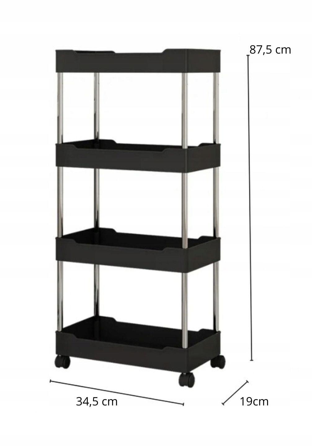 МОБІЛЬНА ПОЛИЦЯ НА КОЛІСЦЯХ КУХОННА TRART 4 ПОЛИЦЯ ЧОРНА ДЛЯ КУХНІ 34,5x19x87,5