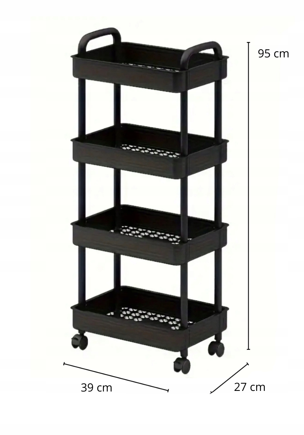 МОБІЛЬНА ПОЛИЦЯ НА КОЛІСЦЯХ КУХОННИЙ ВЕЗОК 4 ПОЛИЦІ ЧОРНА ДЛЯ КУХНІ 39x27x95