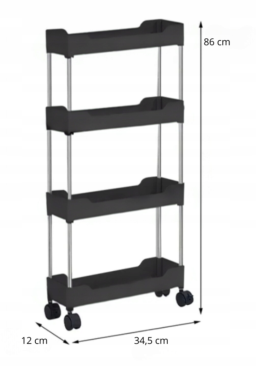 МОБІЛЬНА ПОЛИЦЯ НА КОЛІСЦЯХ КУХОННИЙ ВОЗИК 4 ПОЛИЦІ ЧОРНА ДЛЯ КУХНІ 34,5х12х86