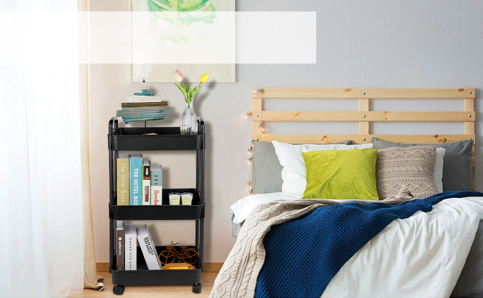 - Візок на колесах можна використовувати для розміщення книг, закусок, іграшок у вітальні, для зберігання косметики, рушників, засобів для чищення у ванній або для розміщення спецій, круп. і посуд на кухні.