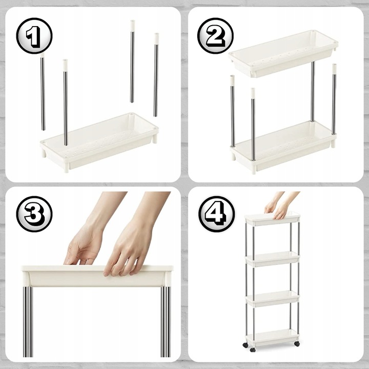 ➡️Більше ніякого безладу! Практична чотирирівнева полиця на колесах. Він чудово працюватиме у вашому домі. У них можна зберігати предмети для кухні та ванної кімнати, а також дрібні аксесуари. Завдяки універсальному дизайну чудово підійде до будь-якого інтер'єру.