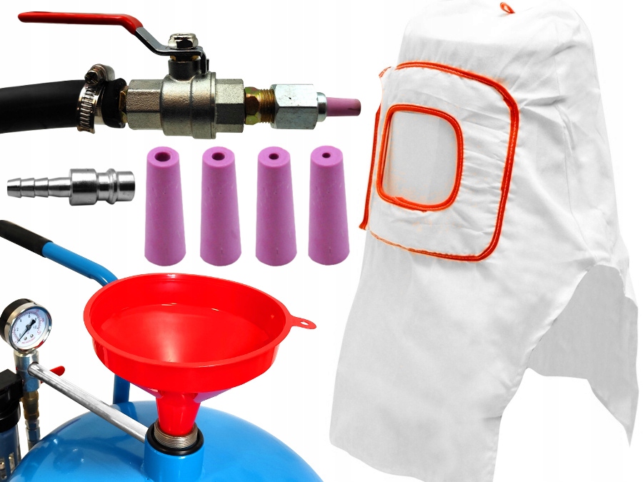 У наборі разом з піскодесятником є керамічні форсунки з піскоструминами, тефлонова стрічка та захисна маска з піскоструминкою.