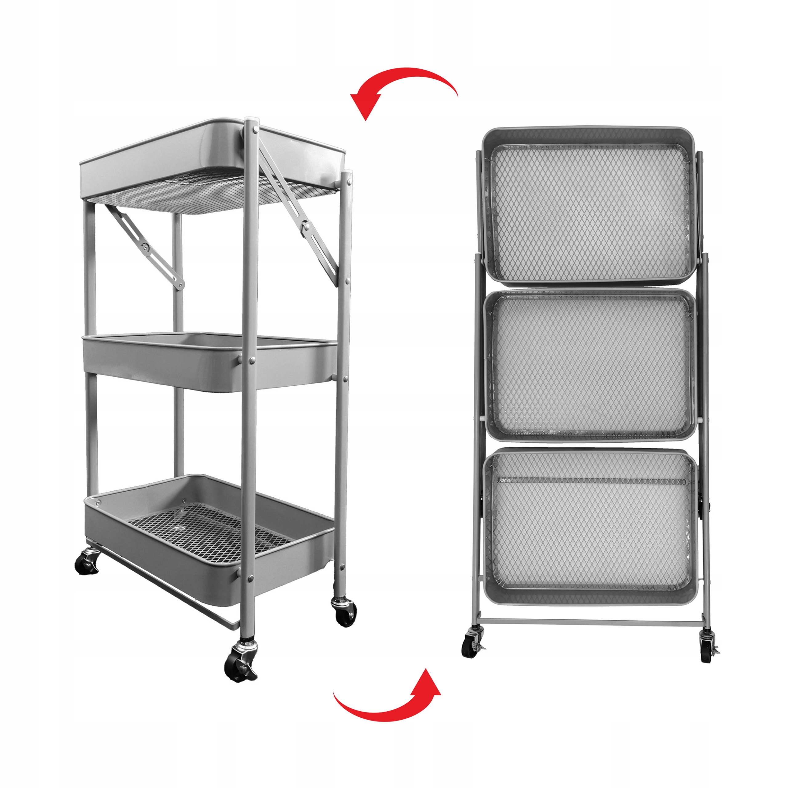 МОБІЛЬНА СКЛАДНА 3 ПОЛИЦЯ КУХОННА ТА ВАННА ПОЛИЦЯ НА КОЛЕСАХ СІРИЙ ВІЗОК