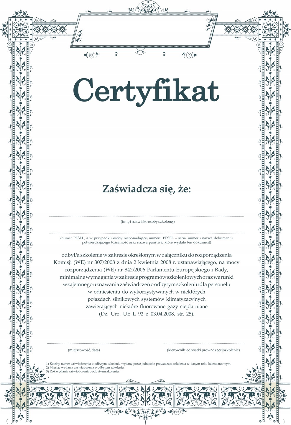 - Після завершення навчання кожен учасник отримує «Сертифікат про навчання», дійсний безстроково, який визнається в усьому Європейському Союзі.