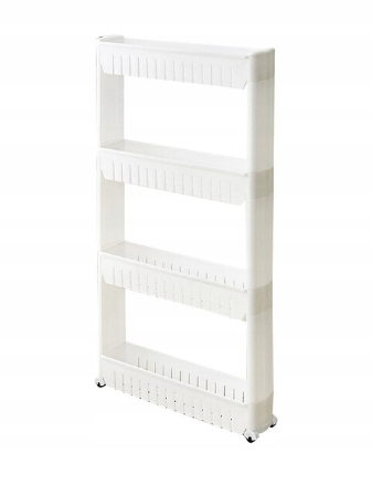 Полиця ідеально підходить для кухонь, завдяки своїй вузькій конструкції та практичним коліщаткам вона займає мало місця та може використовуватися, наприклад, для зберігання напоїв, спецій, сніданку крупи. Полиця ідеально вписується в щілину між меблями, роблячи її практично непомітною та дуже зручною у використанні.