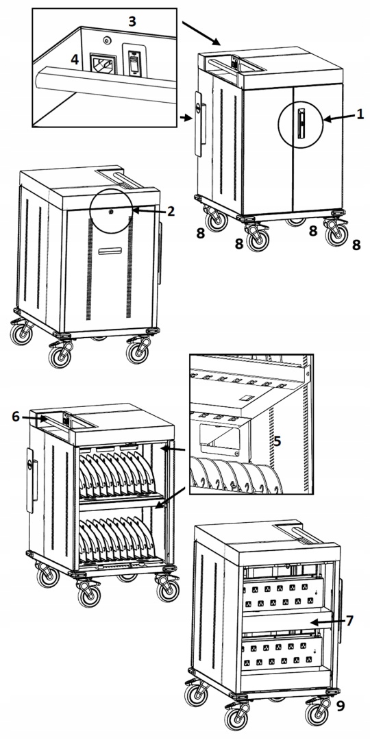 Після робочого дня візок служить закритим складом відділення для 24 пристроїв,які можна заряджати.