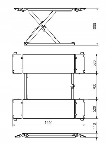 МОБІЛЬНИЙ АВТО Ножичний підйомник 3T INVENTO 400 V ВИСОТА 1 М БЕЗ МАСЛА