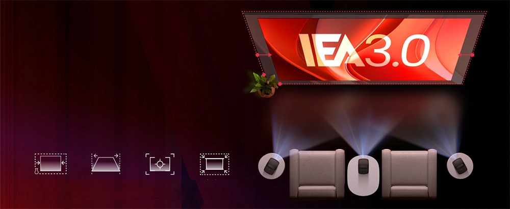 Конфігурація за лічені секунди. Наша інтелектуальна технологія адаптації до навколишнього середовища регулює розмір екрана, автоматичну корекцію трапецеїдальних спотворень, автофокусування та уникає перешкод лише за 3 секунди.