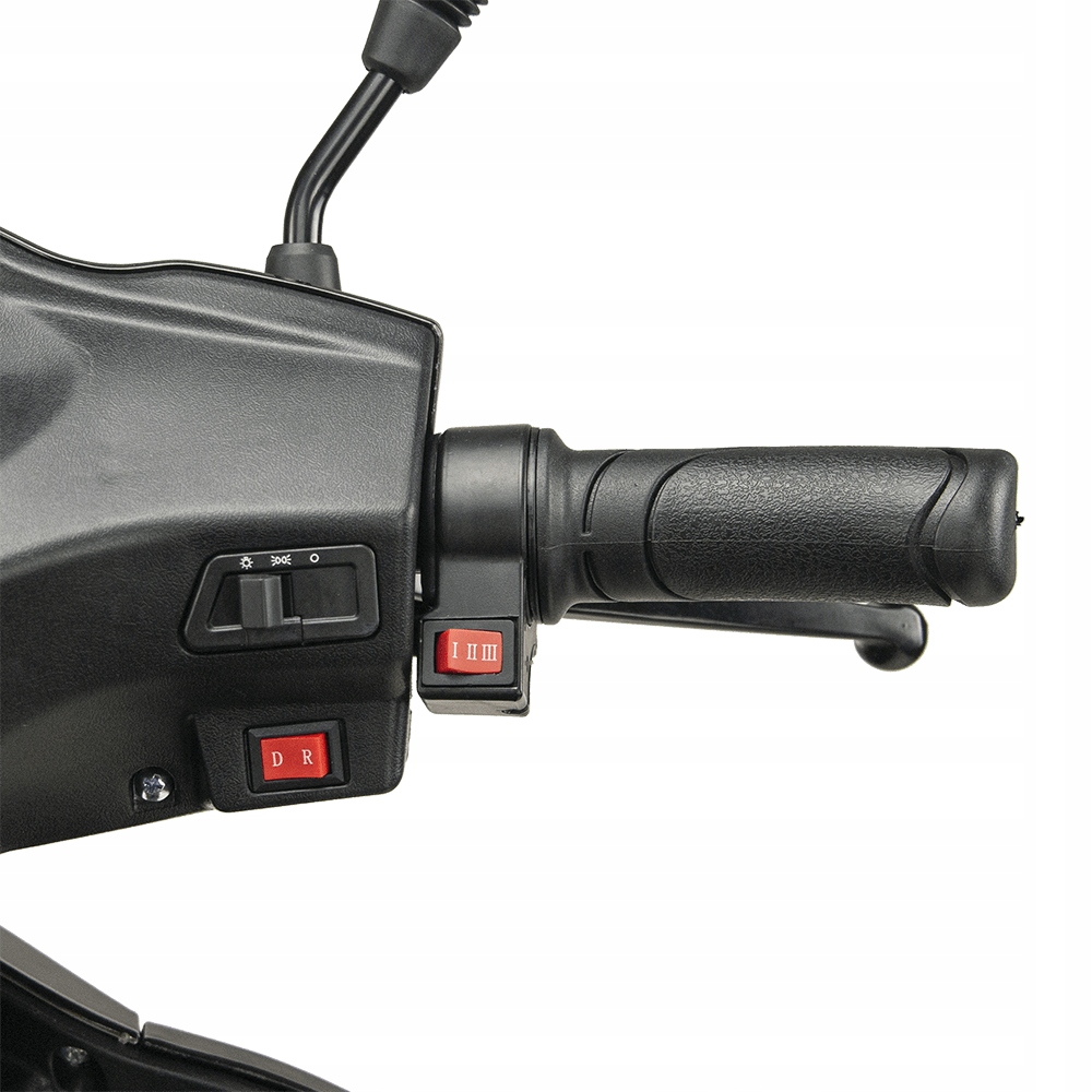 3-ступеневе регулювання максимальної швидкості, яку досягає транспортний засіб, дозволяє регулювати швидкість руху відповідно до потреб користувача. Ви можете рухатися, наприклад, як пішохід (6 км/год) або змінити напрямок руху назад. І все це одним рухом руки.