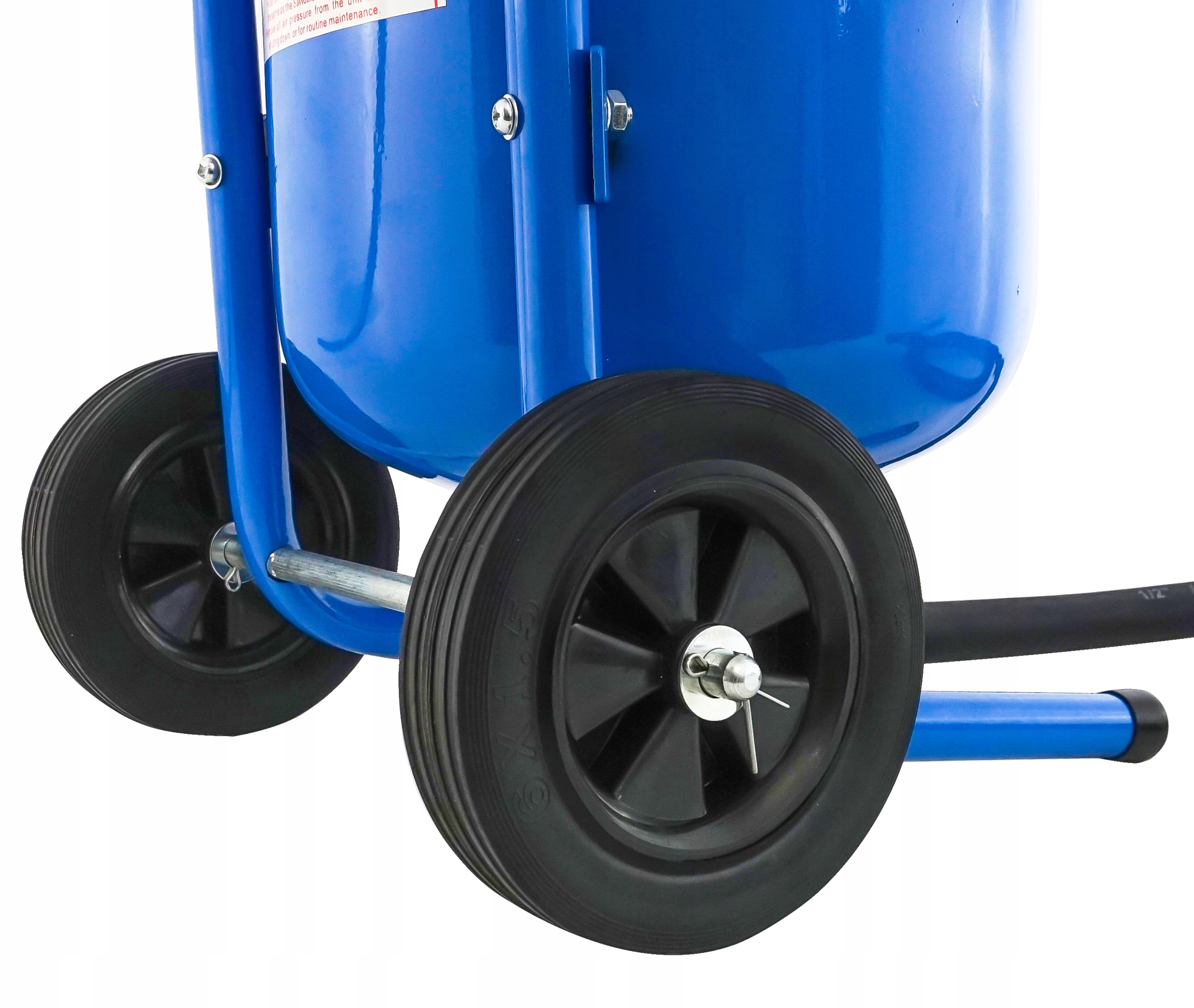 Піскоструминний апарат оснащений гумовими колесами та зручними ручками, які полегшують його пересування та підвищення комфортності роботи оператора апарату.