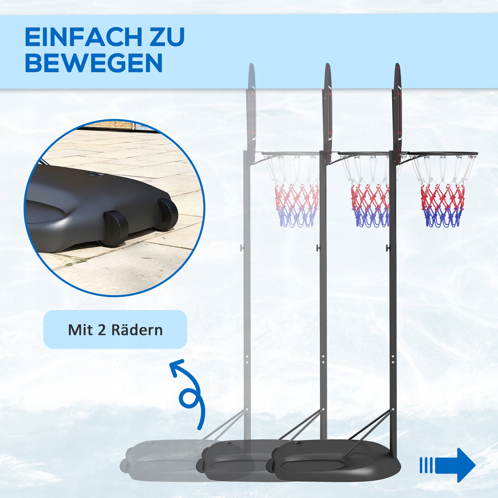 Mobilny Stojak do Koszykówki, Regulowana Wysokość 1,7-2,3 m, Czarny