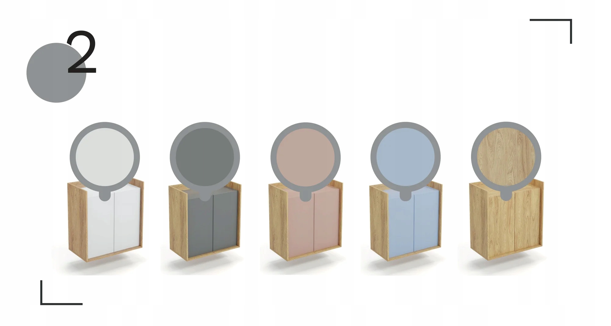 Корпуси меблів MOBIUS завжди мають колір натурального гікорі, тоді як фасади залишаються індивідуальною справою для майбутнього користувача. Ваша фантазія обмежена!