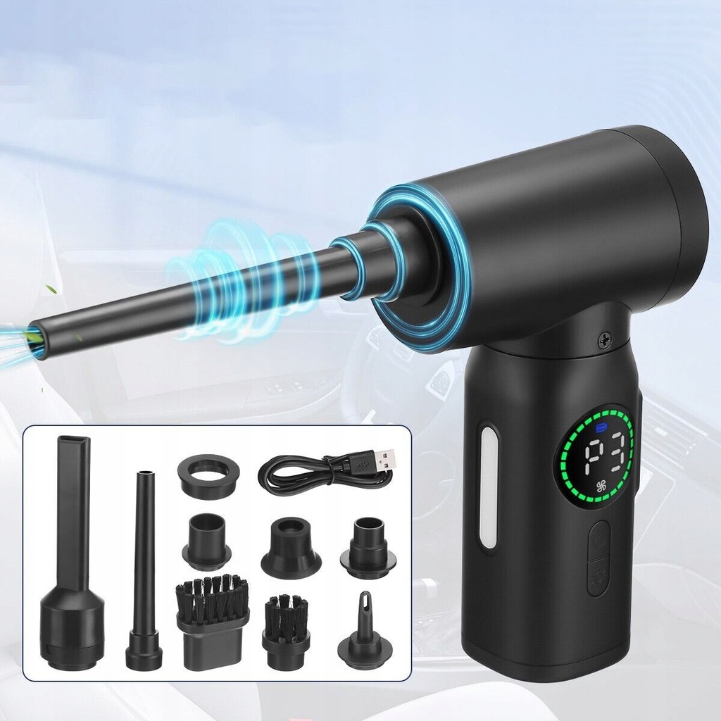 - ✔️ 【Багатофункціональний бездротовий пилосос】: від клавіатури до корпусу комп’ютера, до кондиціонер і, нарешті, диван, пилозбірник повітря може ідеально очистити там, де вам це потрібно. Електричний пилозбірник оснащений додатковими 4 насадками і 4 щітками, що дозволяє проводити багаторазове очищення. Він може не лише очищати пил, але й надувати кільця для плавання, м’ячі для йоги, надувні матраци тощо. Компактний дизайн легко носити.