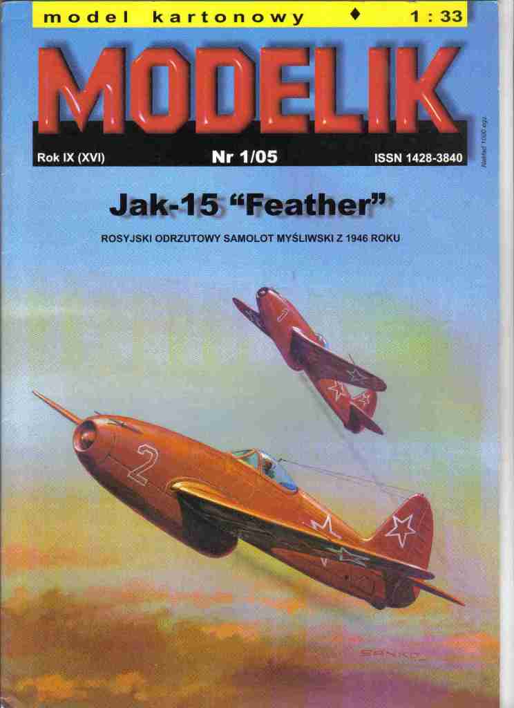 Модель № 1/05 Російське винищувач JAK-15 Перо