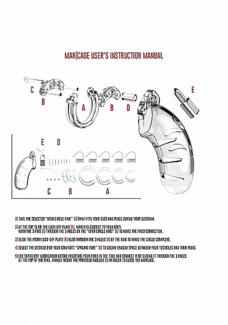 Клітки для монтажу Man|Cage виготовлені з високоякісного полікарбонату. Це надзвичайно легкий, міцний і гіпоалергенний матеріал. Клітка складається з трьох ідеально підігнаних елементів. Дві кліпси з'єднайте верхні елементи між собою, а більш вузький овальний затискач з'єднає кільця з кліткою.Багатий вибір кілець різних розмірів, розташованих на різній відстані один від одного, дозволить вам ідеально підібрати обладнання!Кільця гарантують комфорт і безпеку .Клітку можна легко закрити за допомогою металевого замка або ремінця.Регульований ремінь гарантує, що ви не викличете підозр при проходженні крізь ворота аеропорту, на фестивалі чи заході!Підтримка гігієни дуже важлива.Гарантії обладнання Man|Cage достатньої вентиляції та дозволяє легко процідити картоплю. Кейдж не дозволить вам досягти ерекції під час його носіння. Після його видалення ваш пеніс стане твердим, як камінь! Монтажна клітка Man|Cage дає величезну перевагу людині, яка має ключ!