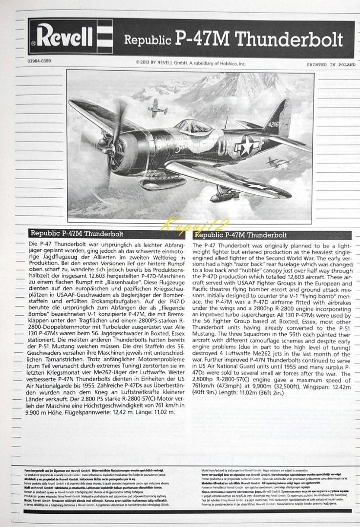 Оплачивая «Модель американского самолета P-47M Thunderbolt + коврик А3, краски, клей, кисти.» данный товар из каталога «Воздушные суда» вы можете быть уверены, что после оформления заказа, доставки в Украину, вы получите именно то, что заказывали, в оговоренные сроки и европейского качества.