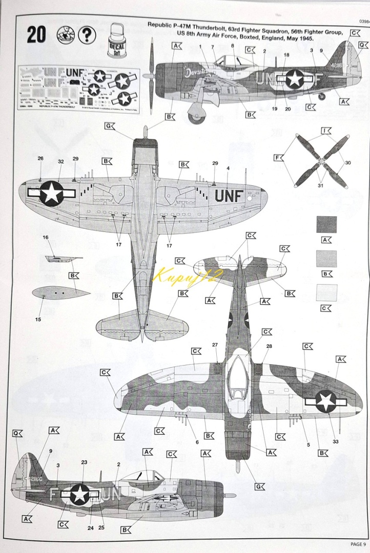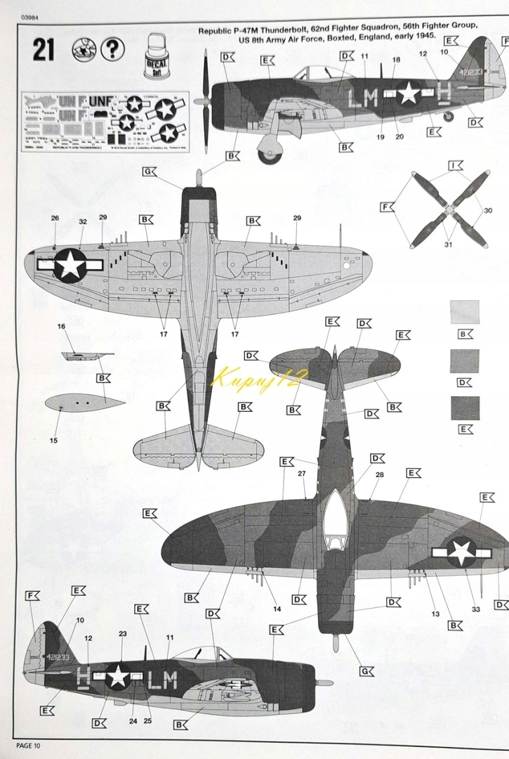 Модель американського літака P-47M Thunderbolt + килимок А3, фарби, клей, пензлі