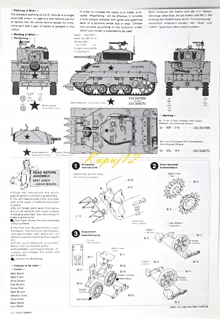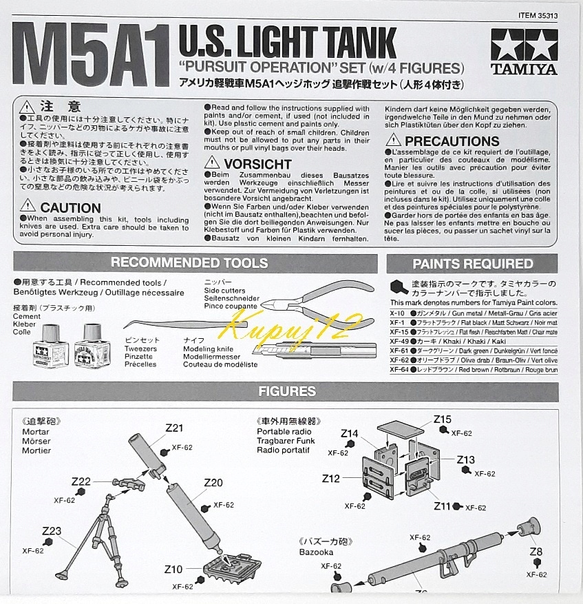 Набір включає пластикову модель американського танка M5A1 Light Tamiya танка. Шкала 1:35