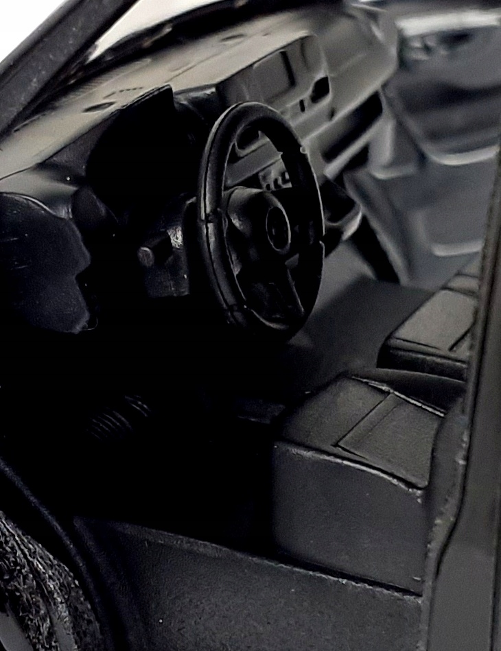 Він має бічні та задні дверцята, що відкриваються, через які можна зазирнути всередину моделі, і він має гумові шини.